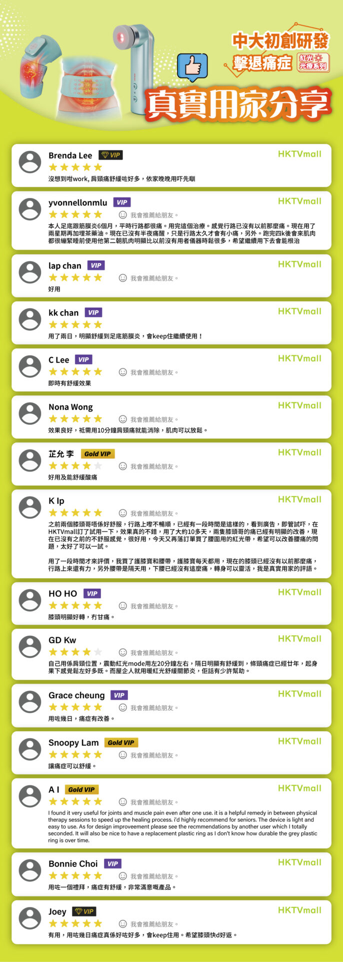 Heat therapy can help relax fatigued and sore muscles. There are three levels of heat: 40℃ (blue light) > 45℃ (green light) > 50℃ (red light) (+/- 5℃).